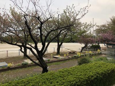 雲のないよい天気です。学校の桜は散り始めていますが、それ以外のたくさんの花が咲いています。