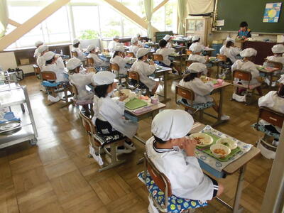 今日から給食のスタート、午後まで授業