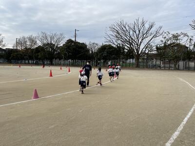 さわやかな天気の中、今日も小渕っ子は元気に走ります。