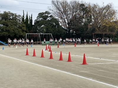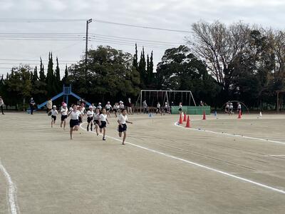 明日は持久走大会です。朝の一(いち)運動や業間では、校庭を走っている子供たちの姿があります。