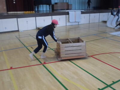 6年生の体育の授業です。体育館で跳び箱に取り組んでいます。