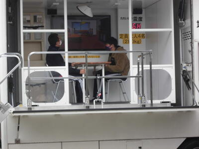本日、春日部市の起震車が来校し、震度6などの地震の揺れを体験しました。(感染症予防のため、起震車には少人数で、また乗車前後にはアルコール消毒をおこなうなど、対策を徹底して実施しました。)