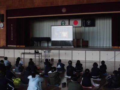 ↓ 子供たちも、真剣に映像を見たり、講師の方のお話を聞いたりしています。