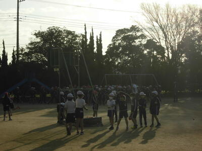今日の朝。校庭で元気に運動している子供たちの様子が見えます。