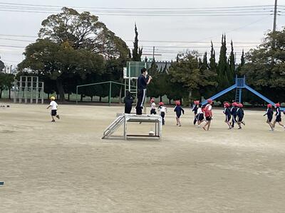 本日は風の強い一日となりました。朝の校庭では、子供たちが元気に運動に励んでいます。高学年はマラソン、低学年は縄跳びに取り組み、個人やクラスでの記録更新にチャレンジしています。