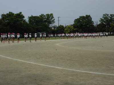 本日の朝は、さわやかタイム。全校で運動する時間です。子供たちは校庭に出て、元気に校庭を走りました。