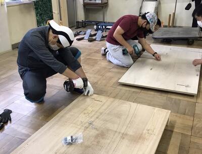 本日は、おやじの会の活動がありました。子供たちが、校庭で使用する、ジャンピングボードを制作していただきました。