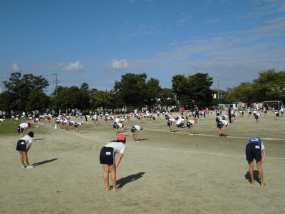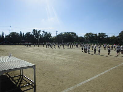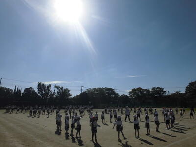 ( ↓ 今日の朝は、さわやかタイム。全校で運動する時間です。今日はインターバル走に取り組みました。)