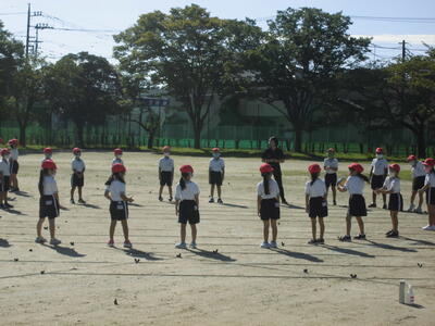 ( 音楽が止まった時にボールを持っていた人はペナルティです。でも、ボールを持っていた人とは限らず、「となりの人」「右の五人」「持っていなかった人」など、そのつど変わります。)