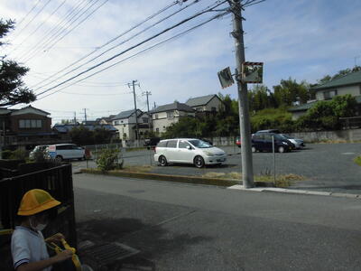 ( ↓ 学区内の危険な箇所や、自分たちの安全を守ってくれる物などを調べています。)