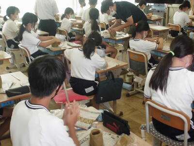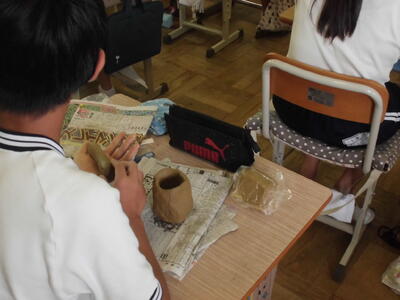 本日、6年生は外部から講師の方を招いて陶芸教室をおこないました。