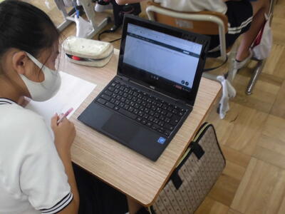 本日は、そのための接続確認テストがありました。春日部市内の全小中学校で、本日の同時刻いっせいに小学校4年生以上の児童生徒が、練習問題に取り組みました。