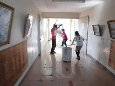 ( ↓ 清掃の仕方が変わったので、清掃担当の先生や保健の先生が、児童向けの解説動画を作成しました。動画では6年生の保健委員も登場しています。)