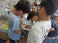 理科の学習。メダカの受精卵を顕微鏡で観察しました。(5年生)