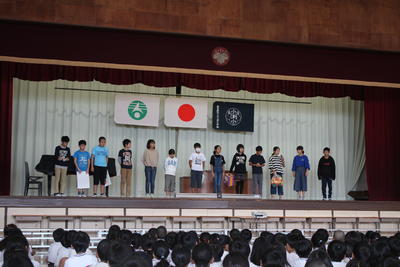 図書委員会からは、借りた本の数ベストテンや、図書に関わるクイズについての発表がありました。