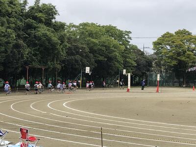 9:30 プログラム5番、5年生の徒競走100メートル走が始まっています。