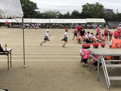 10:35 プログラム9番、3・4年生による、ボール運びリレーが始まっています。