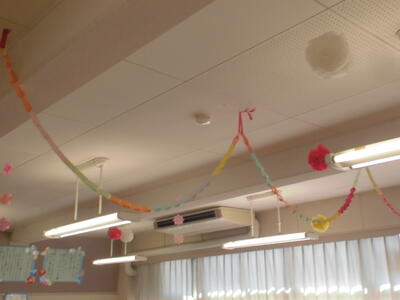 ( 図書館支援員さんさんによって、季節をイメージする飾り付けがされています。)