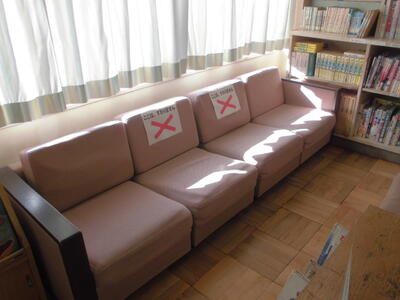 ( 子供たちが集まる人気の場所なので、感染症対策のため、密にならないようパーテーション=間仕切りが設置されています。また席の間が離してあります。)