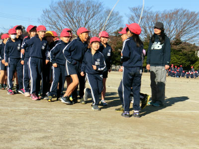 高学年は7分間、中学年は5分間、低学年は3分間、前ふつう跳びを一回旋一跳躍で跳びます。一回も引っかからないで跳ぶのは、簡単なようでなかなか難しいです。普段から練習していないと、なかなか続きません。