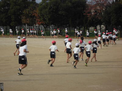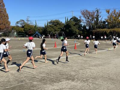 今週末には校内持久走大会が予定されています。今日の昼休みも、「RUN×3(ランランラン)」(持久走大会に向けて自分が走った周数を記録していく取組)で、自分の目標に向けて多くの児童が校庭を走っています。