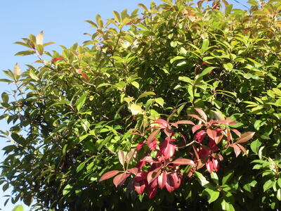 ( となりの赤や黄色い色づいた葉っぱとの対照がきれいです。)