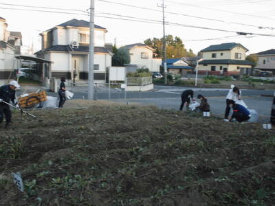 ご協力の保護者の方が、次の学年が来る前に、畑の整備やイモ掘りの準備を進めてくれています。