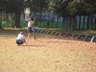 学校にはたくさんの落ち葉が舞っています。毎日、校務員さんが集めてくれています。