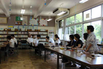 授業後は、全職員で研究協議、その後、文教大学准教授の石井先生に御指導をいただきました。