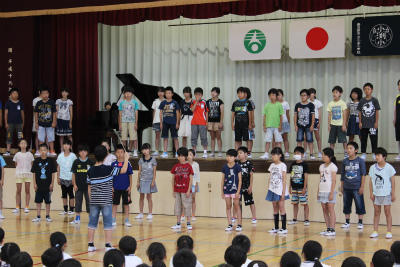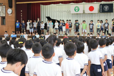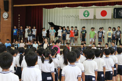 全校で歌う6月の歌は「にじを歌って(sing a rainbow )」でした。音域の高い曲でしたが、全員で美しい歌声を響かせてくれました。