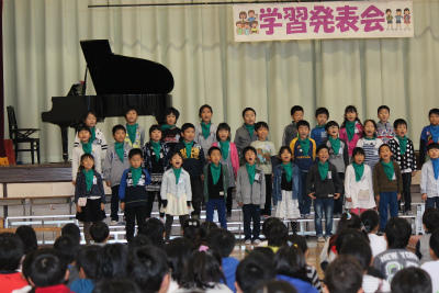 午前中は学習発表会と授業公開でした。学習発表会では、各学年による群読や合唱の発表など、授業公開では全校で行う道徳の授業と各教科の授業でした。