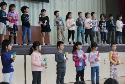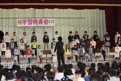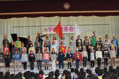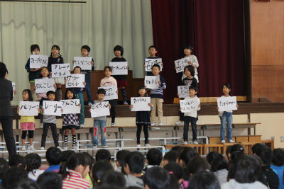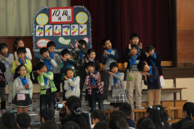 これまで、6年生から順に、各学年の発表をしてきましたが、いよいよ1年生の番となりました。
