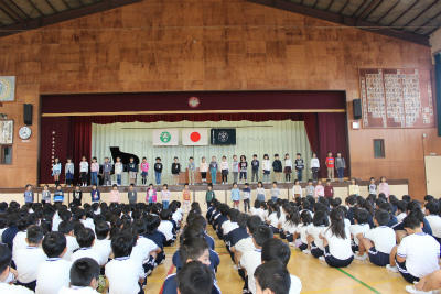 5年生 歌・リコーダー「すてきな一歩」「ほたるこい」 群読「倶利伽羅峠の合戦」