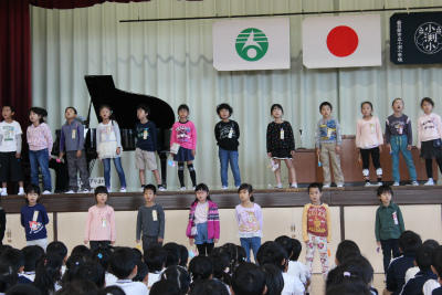 1年生 歌「夢をあきらめないで」 群読「大きなゆめのマーチ」
