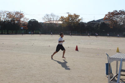 11月29日に実施予定の校内持久走大会に向けて、各学年とも練習をしています。2時間目、1年生は体育の授業でタイムトライアル。
