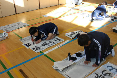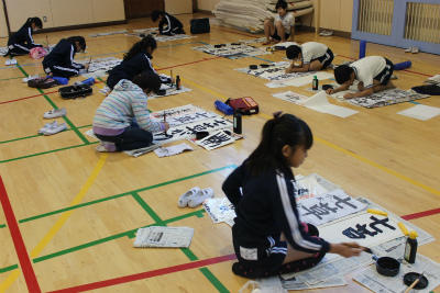 インフルエンザや感染性胃腸炎等の影響で、先週は放課後の書き初め練習ができませんでした。しかしながら、今学期の放課後練習は今日で最終日となるため、未だ欠席者は少なくない状況ですが、練習再開となりました。
