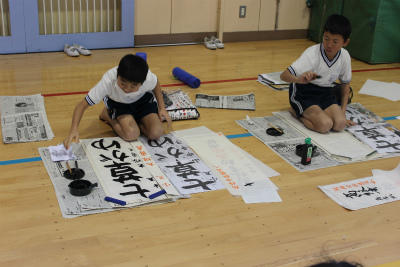 練習がなかった間にも、子どもたちはそれぞれ自宅で練習を重ねてきたようです。さすが代表選手です。限られた時間の中、誰もが集中して画仙紙に向き合っていました。
