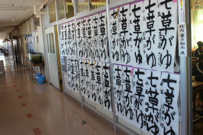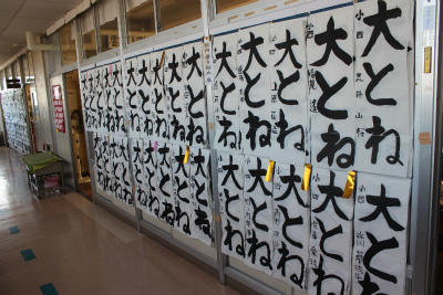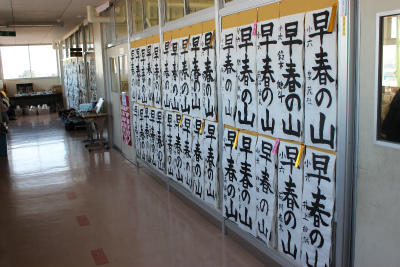 先週の競書会を受けて、その作品を校内各クラス廊下に展示しています。