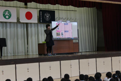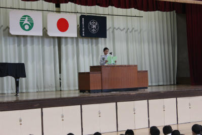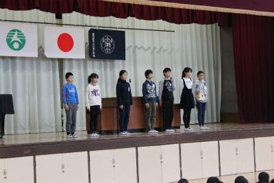 ③スーパー元気さわやか集会に参加した小渕小代表の6年生による報告、木村さんによる作文発表