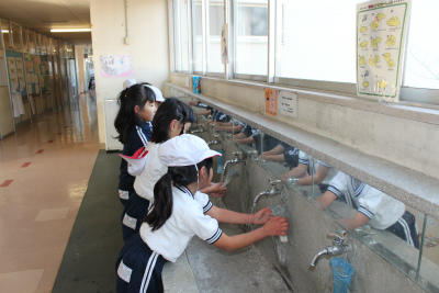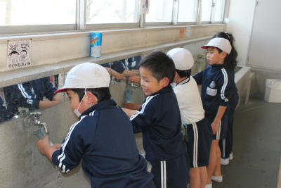 そして、手洗い・うがいはしっかりと… 予防対策はしっかりしながら、今日も元気に走る小渕っ子です。