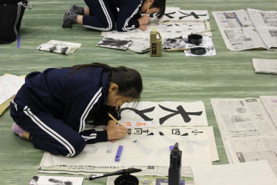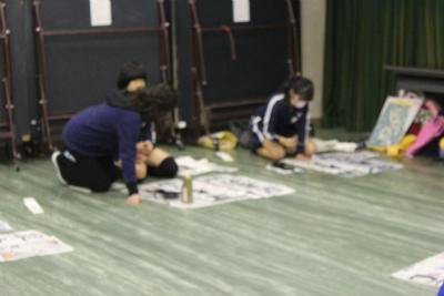 インフルエンザや感染性胃腸炎等の影響で、先週は放課後の書き初め練習ができませんでした。しかしながら、今学期の放課後練習は今日で最終日となるため、未だ欠席者は少なくない状況ですが、練習再開となりました。