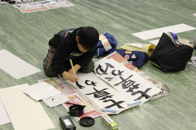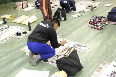 練習がなかった間にも、子どもたちはそれぞれ自宅で練習を重ねてきたようです。さすが代表選手です。限られた時間の中、誰もが集中して画仙紙に向き合っていました。