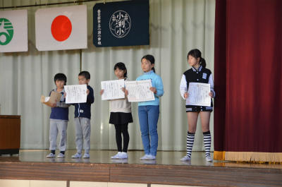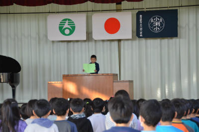 今日のお話朝会は、①校長の話、②今月の生活目標、③スーパー元気さわやか集会報告と、盛りだくさんの内容でした。ちょっと寒い体育館でしたが、子どもたちはしっかりとした態度で臨めていました。
