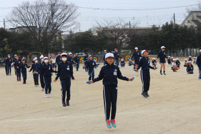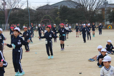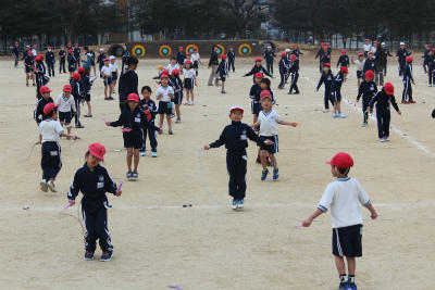 前回の「長縄」から、今回は「短縄」でのトライアルです。低学年は3分間、中学年は5分間、6学年は7分間跳び続けられるか挑戦しました。1年生も毎日の練習の成果が表れて見違えるように上手になりました。