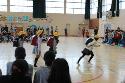 6年生の司会進行により、6年間を振り返る映像の披露や、6年生、保護者の皆様による発表(余興)、私たちも6年生の卒業をお祝いするため、体を張って?!メッセージを送らせていただきました。楽しいひとときを過ごすことができました。