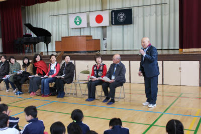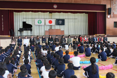 本校学校応援ボランティア(栽培・学習・飼育・図書・花植・学校応援団)をはじめ、交通指導員、給食調理員、松寿会、応援団コーディネーター、スクールガードリーダーなど、小渕の子どもたちを様々な場面で支えてくださっているみなさんをお招きし、1年間の感謝の気持ちを込めて、お手紙を渡し、全校児童による合唱を行いました。