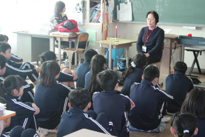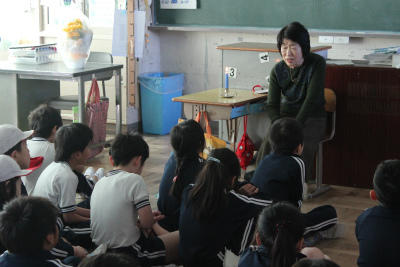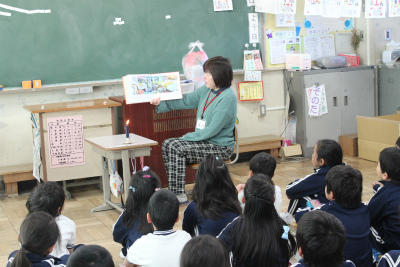 今日は、今年度最後の「お話会」でした。1年生から6年生まで全学年で行いました。