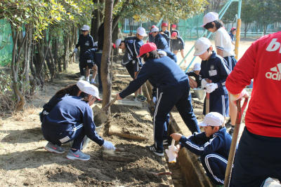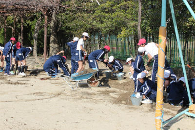 毎日使う校庭のトラック用に張られたロープを修繕したり、校庭周りの排水溝にたまった土を除去してくれたりと大活躍です。