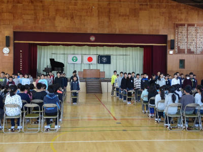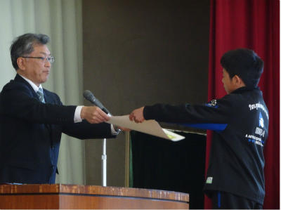 また、予行の後、6年生の児童表彰がありました。それぞれの方面で活躍した4名に表彰状が贈られました。おめでとうございます。