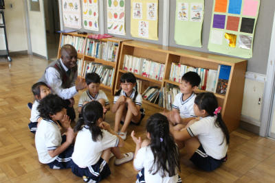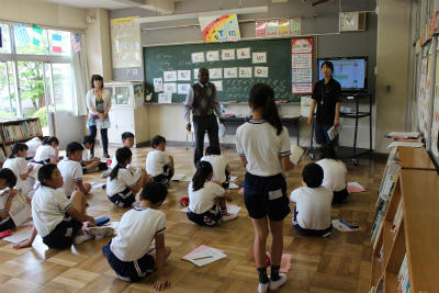 外国語活動(英語活動)で、今年度初めて ALTのアマニン先生が来校、子どもたちと一緒に活動していただきました。